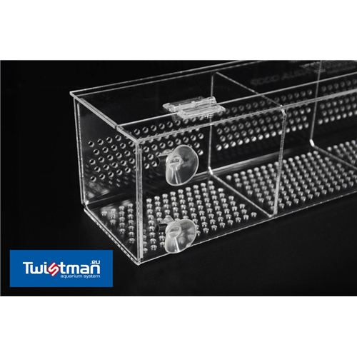 Wykonany z najwyższej jakości szkła akrylowego, składający się z czterech sekcji kojec umożliwiający bardzo łatwe i szybkie odizolowanie, lub przetrzymanie danego osobnika np. w celu sprzedaży lub wyizolowanej hodowli.