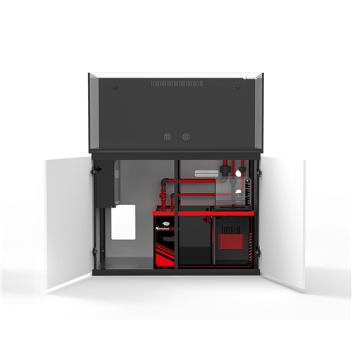 Szafka została wykonana z solidnych materiałów odpornych na wilgoć i wyposażona w system cichego domykania. Wnętrze oferuje wystarczająco dużo miejsca na pompę dozującą, system automatycznego uzupełniania wody (ATO), sterowniki, rezerwuar i pozostałe akcesoria techniczne.