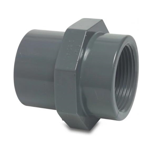 Mufa przejściowa Profec, wykonana z PVC-U, posiada łączenie z klejoną mufą/klejonym króćcem oraz gwintem wewnętrznym.