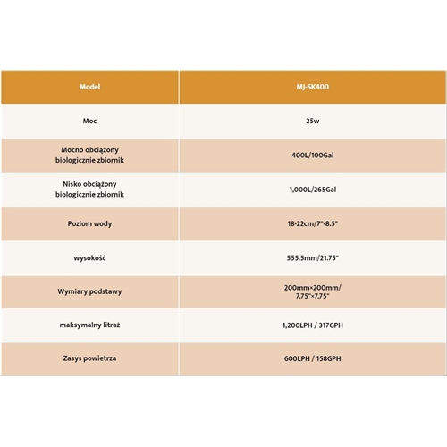 Poziom wody: 18- 22 cm / 7"- 8,5"
