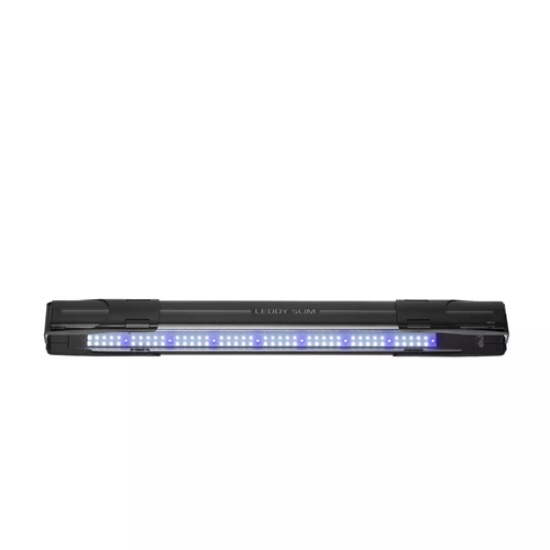 Lampa ledowa LEDDY SLIM MARINE DAY&NIGHT jest przeznaczona do oświetlania morskich zbiorników otwartych. Zawiera starannie dobrane diody LED, które zapewniają idealną iluminację akwarium gwarantując doskonałe warunki do życia dla jego mieszkańców oraz wyjątkowy efekt wizualny. Jej płaski, futurystyczny kształt i modny, biały lub czarny kolor sprawiają że doskonale komponuje się z nowoczesnymi zbiornikami akwariowymi i świetnie wygląda w każdym wnętrzu. Poza tym jest uniwersalna – rozsuwane wsporniki umożliwiają jej instalowanie również na zbiornikach o niestandardowych rozmiarach. Można ją również podwiesić nad akwarium do sufitu lub specjalnego stelażu przy pomocy akcesoryjnego zestawu LEDDY SLIM HANGER.
