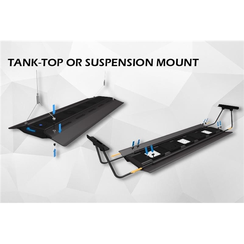 Kontynuując w miejscu, w którym zakończył się Maxspect R420r, RSX-F łączy elegancki, aerodynamiczny styl z konstrukcją, która umożliwia bierne chłodzenie urządzenia. Uderzające jednoczęściowy korpus, wykonany z aluminium 3036 architektonicznego, ma zaledwie 2,8 mm grubości na krawędziach, dzięki czemu jednostka ma opływowy wygląd nad każdym akwarium. RSX, podobnie jak jego poprzednik, może być zamontowany na zbiorniku za pomocą nóg lub zawieszony nad akwarium za pomocą zestawu linek.
