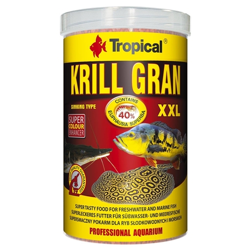 • super smaczny, wieloskładnikowy pokarm wybarwiający w formie dużego, tonącego granulatu z wysoką zawartością kryla antarktycznego (40%).