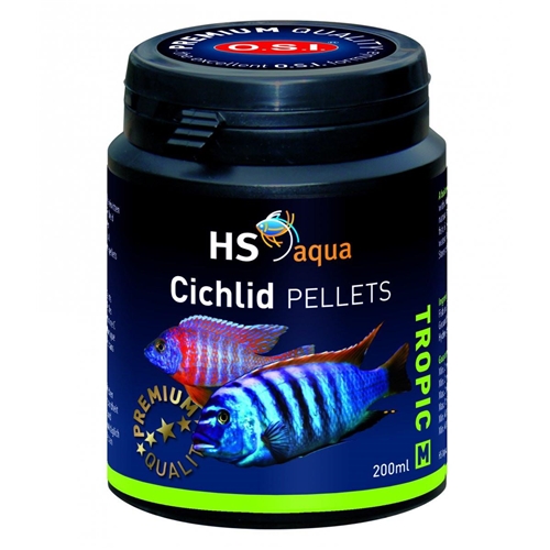 W naturalnym środowisku pielęgnice pobierają znacznie częściej pokarm zwierzęcy niż roślinny. Ze względu na ich drapieżny charakter, są bardzo aktywne. OSI HS Aqua Pellets Cichlid zawierają wysoki poziom białka zwierzęcego w celu zaspokojenia mięsożernych nawyków żywieniowych większości pielęgnic Centralnej i Południowej Ameryki i Afryki. Wysoki poziom tłuszczu dostarcza energię dla tych aktywnych ryb a naturalne wybarwiające pigmenty uwypuklają ich żywe i piękne ubarwienie. OSI HS Aqua Pellets Cichlid są odpowiednie dla większych pielęgnic.