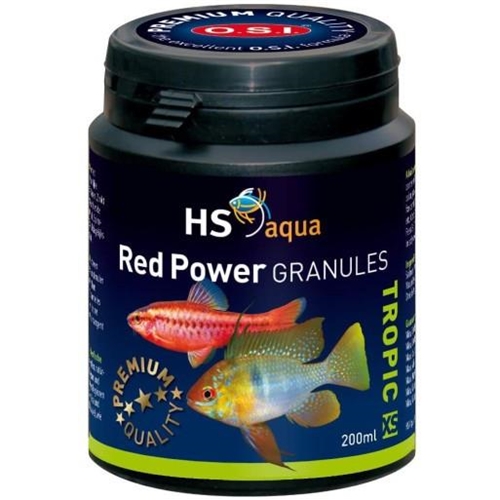O.S.I. Red Power Granules to pokarm, który poprawia i uwydatnia ubarwienie ryb. Forma pływająco-tonących granulek umożliwia dostęp do pokarmu rybom żerującym w różnych strefach zbiornika. Większość pokarmu opada na dno, jednak około 30% porcji pozostaje na dłużej na powierzchni wody, dając pożywienie rybom przebywającym przy tafli.