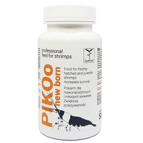 PIKOo New Born to pełnowartościowym pokarmem przeznaczonym dla nowo narodzonych i młodych krewetek. Mikrocząstki pokarmu wytwarzane są w zaawansowanych procesach zimnej ekstruzji, granulowania i mikrokapsulacji. Procesy te zapewniają jednorodność składu każdej mikrogranulki.