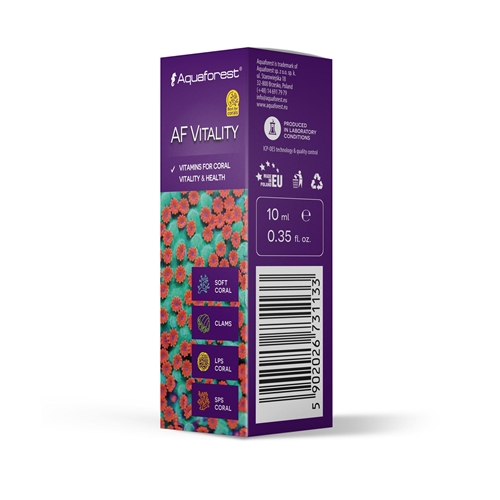 EN: Supplement containing concentrated vitamins for corals. Emphasizes the intensity of the colour and increases the resistance of coral. Supports recovery of stressed and weakened corals after import or disease. Vitamins are very easily removed by skimming process, ozone or granulated carbon.