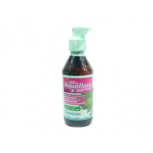 Aquaflora K to preparat zawierający potas – makroelement niezbędny do rozwoju roślin akwariowych. Potas należy do pierwiastków pobieranych przez rośliny w dużych ilościach. Rośliny akwariowe są na ogół dobrze zaopatrzone w azot i fosfor pochodzące z produktów przemiany materii ryb i resztek pokarmowych,natomiast wykazują często niedobory potasu. Brak odpowiedniego zasilania w potas jest widoczny przede wszystkim na starszych liściach, które zaczynają żółknąć i obumierać. Zmiany zaczynają się od brzegów lub wierzchołków liści. Regularne stosowanie Aquaflora K pozwala na uniknięcie niedoboru tego biopierwiastka i wspomaga bujny rozwój roślin.