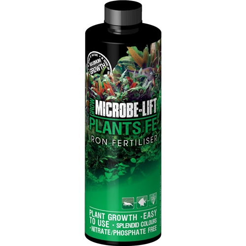 Microbe-lift Iron to skoncentrowane, wysoko przyswajalne żelazo w płynie dla roślin akwariowych. Microbe-lift Bloom & Grow Iron to wysokiej jakości preparat zawierający wysoce stężone żelazo Fe2 (10 000 mg/l) w formie glukonianu (chelatu). Preparat powinien być używalny w przypadku niedoborów żelaza (np. żółkniecie liści, cienkie łodygi) oraz profilaktycznie.