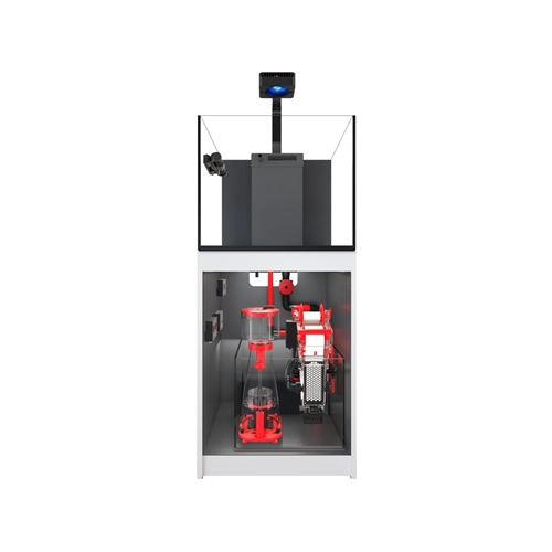 Komora filtracyjna z skarpetami pozwala i zapobiega zatykaniu się pompy. Komora jest łatwa w edycji i standardową skarpetę filtracyjną można zastąpić Red Sea ReefMat, który jeszcze dokładniej zadba o klarowność Twojej wody w zbiorniku. Woda po filtracji wstępnej jest transportowana do komory odpieniacza gdzie jest utrzymywany stały poziom wody tak aby praca odpieniacza była zawsze wykorzystana w stu procentach. Komora bubble stop pozwala na wyłapanie pojedynczych pęcherzyków powietrza. Tak przefiltrowana woda trafia do komory z pompą obiegową (nie załączona w zestawie) która ponownie wypompuje wodę do zbiornika głównego.