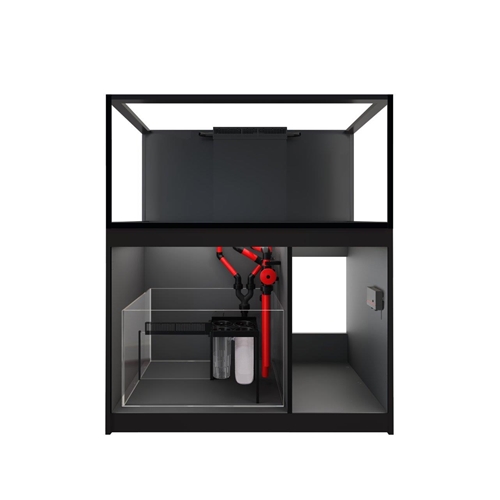 Komora filtracyjna z skarpetami pozwala i zapobiega zatykaniu się pompy. Komora jest łatwa w edycji i standardową skarpetę filtracyjną można zastąpić Red Sea ReefMat, który jeszcze dokładniej zadba o klarowność Twojej wody w zbiorniku. Woda po filtracji wstępnej jest transportowana do komory odpieniacza gdzie jest utrzymywany stały poziom wody tak aby praca odpieniacza była zawsze wykorzystana w stu procentach. Komora bubble stop pozwala na wyłapanie pojedynczych pęcherzyków powietrza. Tak przefiltrowana woda trafia do komory z pompą obiegową (nie załączona w zestawie) która ponownie wypompuje wodę do zbiornika głównego.