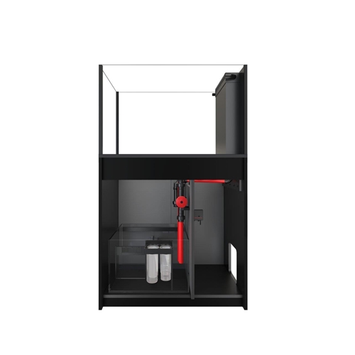 Komora filtracyjna z skarpetami pozwala i zapobiega zatykaniu się pompy. Komora jest łatwa w edycji i standardową skarpetę filtracyjną można zastąpić Red Sea ReefMat, który jeszcze dokładniej zadba o klarowność Twojej wody w zbiorniku. Woda po filtracji wstępnej jest transportowana do komory odpieniacza gdzie jest utrzymywany stały poziom wody tak aby praca odpieniacza była zawsze wykorzystana w stu procentach. Komora bubble stop pozwala na wyłapanie pojedynczych pęcherzyków powietrza. Tak przefiltrowana woda trafia do komory z pompą obiegową (nie załączona w zestawie) która ponownie wypompuje wodę do zbiornika głównego.