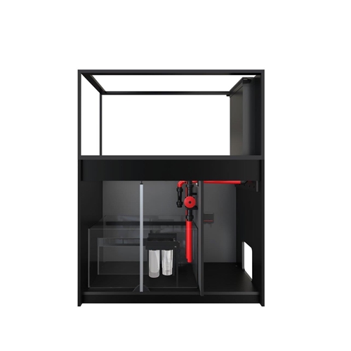 Komora filtracyjna z skarpetami pozwala i zapobiega zatykaniu się pompy. Komora jest łatwa w edycji i standardową skarpetę filtracyjną można zastąpić Red Sea ReefMat, który jeszcze dokładniej zadba o klarowność Twojej wody w zbiorniku. Woda po filtracji wstępnej jest transportowana do komory odpieniacza gdzie jest utrzymywany stały poziom wody tak aby praca odpieniacza była zawsze wykorzystana w stu procentach. Komora bubble stop pozwala na wyłapanie pojedynczych pęcherzyków powietrza. Tak przefiltrowana woda trafia do komory z pompą obiegową (nie załączona w zestawie) która ponownie wypompuje wodę do zbiornika głównego.