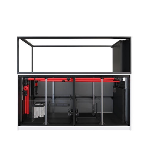 Komora filtracyjna z skarpetami pozwala i zapobiega zatykaniu się pompy. Komora jest łatwa w edycji i standardową skarpetę filtracyjną można zastąpić Red Sea ReefMat, który jeszcze dokładniej zadba o klarowność Twojej wody w zbiorniku. Woda po filtracji wstępnej jest transportowana do komory odpieniacza gdzie jest utrzymywany stały poziom wody tak aby praca odpieniacza była zawsze wykorzystana w stu procentach. Komora bubble stop pozwala na wyłapanie pojedynczych pęcherzyków powietrza. Tak przefiltrowana woda trafia do komory z pompą obiegową (nie załączona w zestawie) która ponownie wypompuje wodę do zbiornika głównego.