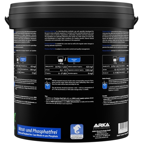 Dawkowanie: użyj wymaganej ilości soli w stosunku do ilości wody RO/DI. Dokładnie wymieszaj aż do rozpuszczenia. Po krótkim czasie woda jest czysta i może zostać użyta. Polecamy podmianę wody w ilości 5-10% objętości zbiornika co tydzień lub dwa tygodnie.